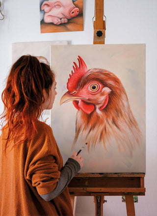 Mit dem Erwerb dieses Produkts unterstützt du die künstlerische und aktivistische Arbeit von Atelier Chantal Kaufmann, die sich leidenschaftlich für Tierrechte und einen veganen Lebensstil einsetzt. Chantal Kaufmann verwendet ihre Kunst, um auf die Schönheit und Einzigartigkeit der Tiere aufmerksam zu machen und das Bewusstsein für deren Leiden zu schärfen. Sie ist seit Jahren an vorderster Front bei Tierrechtsdemonstrationen und Mahnwachen dabei, um das Leid der Tiere zu dokumentieren und ihnen eine Stimme zu verleihen. Ein Teil der Einnahmen aus dem Verkauf ihrer Kunstwerke fließt in ihre fortlaufenden Projekte und Unterstützungsaktionen, die dazu beitragen, das Bewusstsein für Tierrechte zu erhöhen und die Öffentlichkeit zum Nachdenken und Handeln zu bewegen